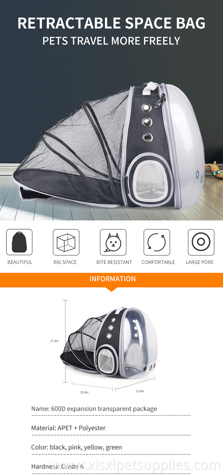 Product Categories : Pet Carrier Bag & Bag > Pet Backpack